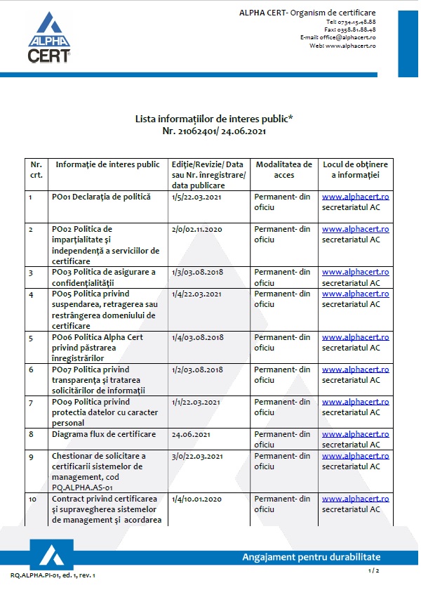 Aflati mai multe despre serviciile oferite de Alpha Cert: